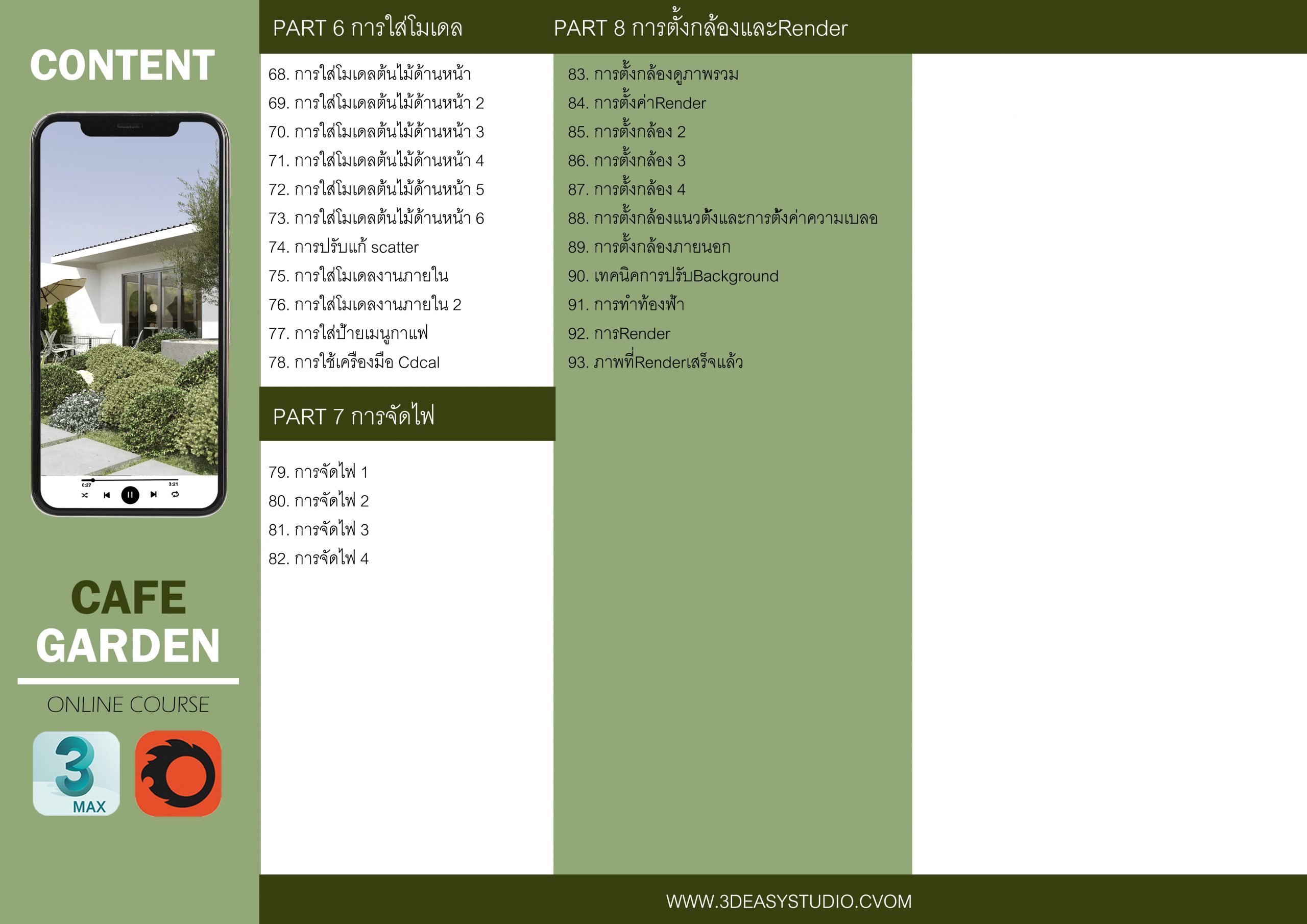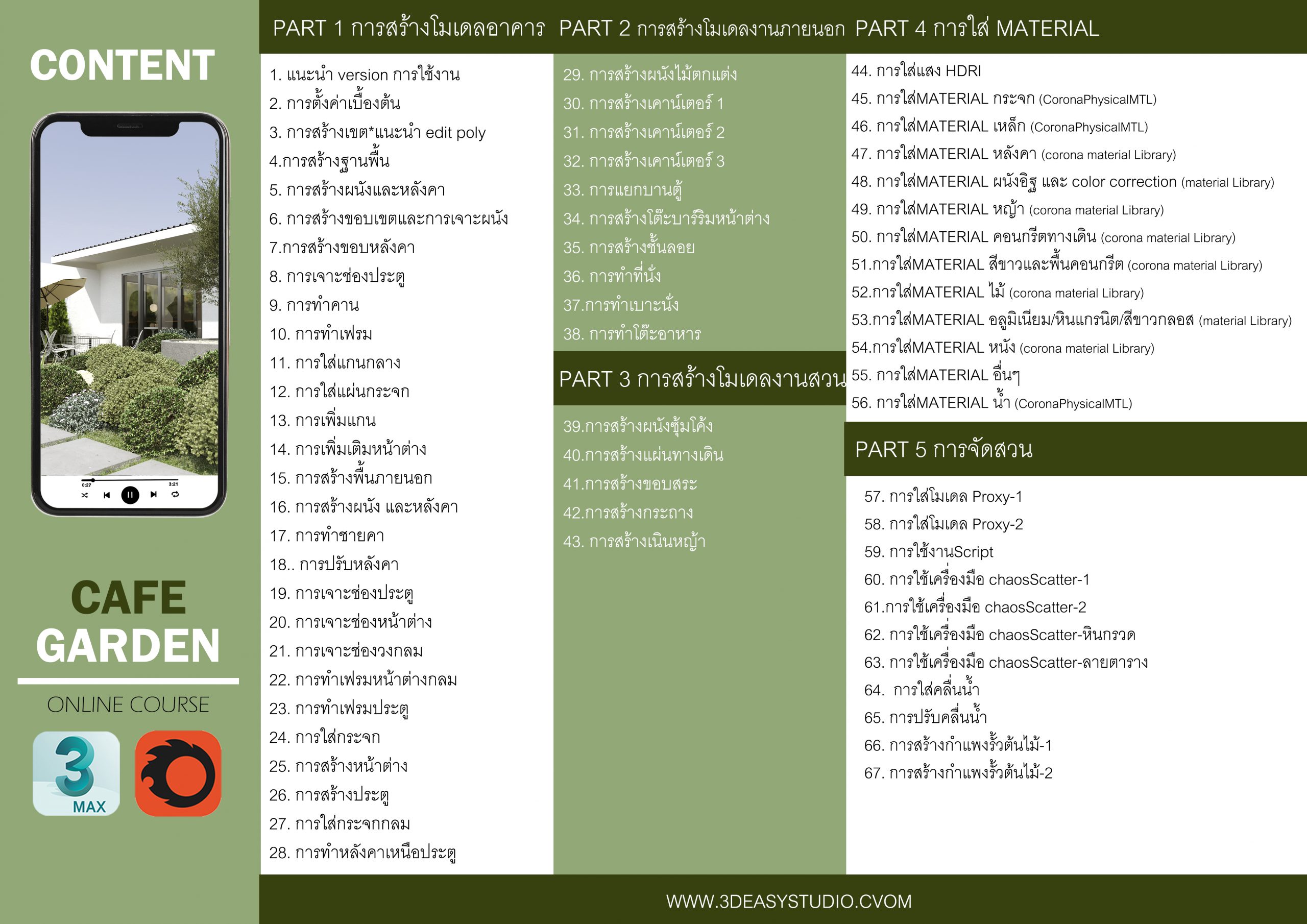CAFE and GARDEN BY 3DEASY author Admin-3Deasystudio Category 3Ds Max Corona (0 reviews) Course Description EXCLUSIVE WORKSHOP!เรียนการสร้างโมเดลคาเฟ่ เฟอร์นิเจอร์บิ้วอิน และการจัดสวน ปลูกหญ้า ด้วยเทคนิคหลากหลายรูปแบบ ที่นำไปต่อยอดในงานจัดสวนได้อีกมากมาย ติดต่อสมัครเรียนผ่าน Facebook คลิก ! ติดต่อสมัครเรียนผ่าน LINE คลิก ! Curriculums CAFE and GARDEN by 3DEASY CAFE and GARDEN by 3DEASY (2) Please login to bookmark this course. Bookmark This Course About Instructor Admin-3Deasystudio 3DS Max Professional View Profile Reviews There are no reviews yet. Add a Review Be the first to review “CAFE and GARDEN BY 3DEASY” Cancel replyYour Rating Your ReviewName * Email * Save my name, email, and website in this browser for the next time I comment. 3,250 ฿Take this course Price: 3,250 ฿Take this course Students: 108 Lessons: 2 Prerequisites: No Course Capacity: 50 Certificate: No