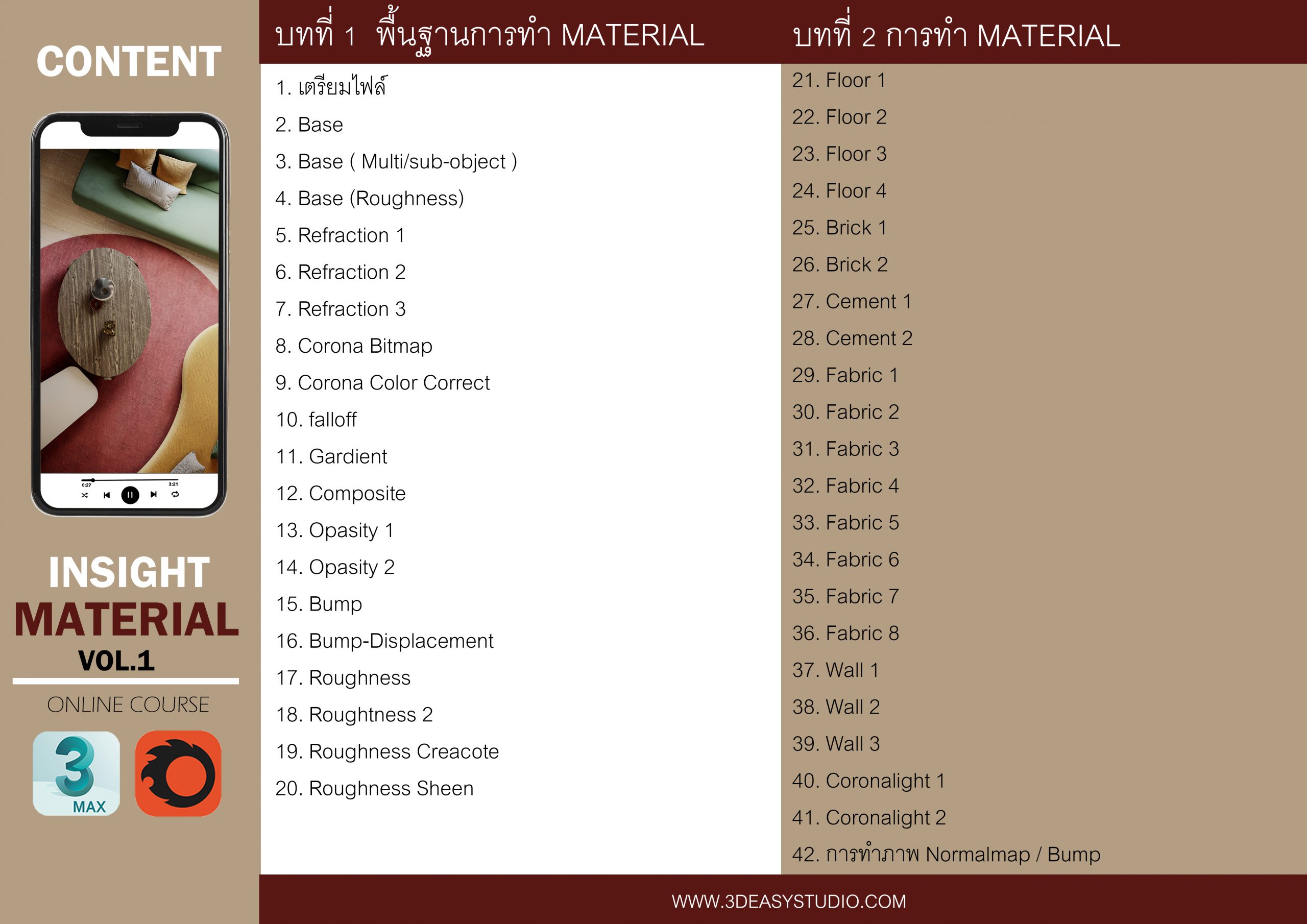INSIGHT MATERIAL author Admin-3Deasystudio Category 3Ds Max Corona (0 reviews) Course Description ใหม่! เรียนการใช้ CoronaPhysicalMtl ที่ทำให้ Material สวยขึ้น ทำง่ายขึ้น และมี Function การใช้งานที่ไม่ธรรมดา? พร้อมเคล็ดลับพื้นฐาน การใช้งาน Material แบบ Realistic! เรียนจบต่อยอดได้ไม่รู้จบ! ติดต่อสมัครเรียนผ่าน Facebook คลิก ! ติดต่อสมัครเรียนผ่าน LINE คลิก ! Curriculums INSIGHT MATERIAL VOL.1 CoronaPhysicalMTL Please login to bookmark this course. Bookmark This Course About Instructor Admin-3Deasystudio 3DS Max Professional View Profile 2,990 ฿Take this course Price: 2,990 ฿Take this course Students: 132 Lessons: 2 Prerequisites: No Skill Level: advanced Course Capacity: 50 Certificate: No