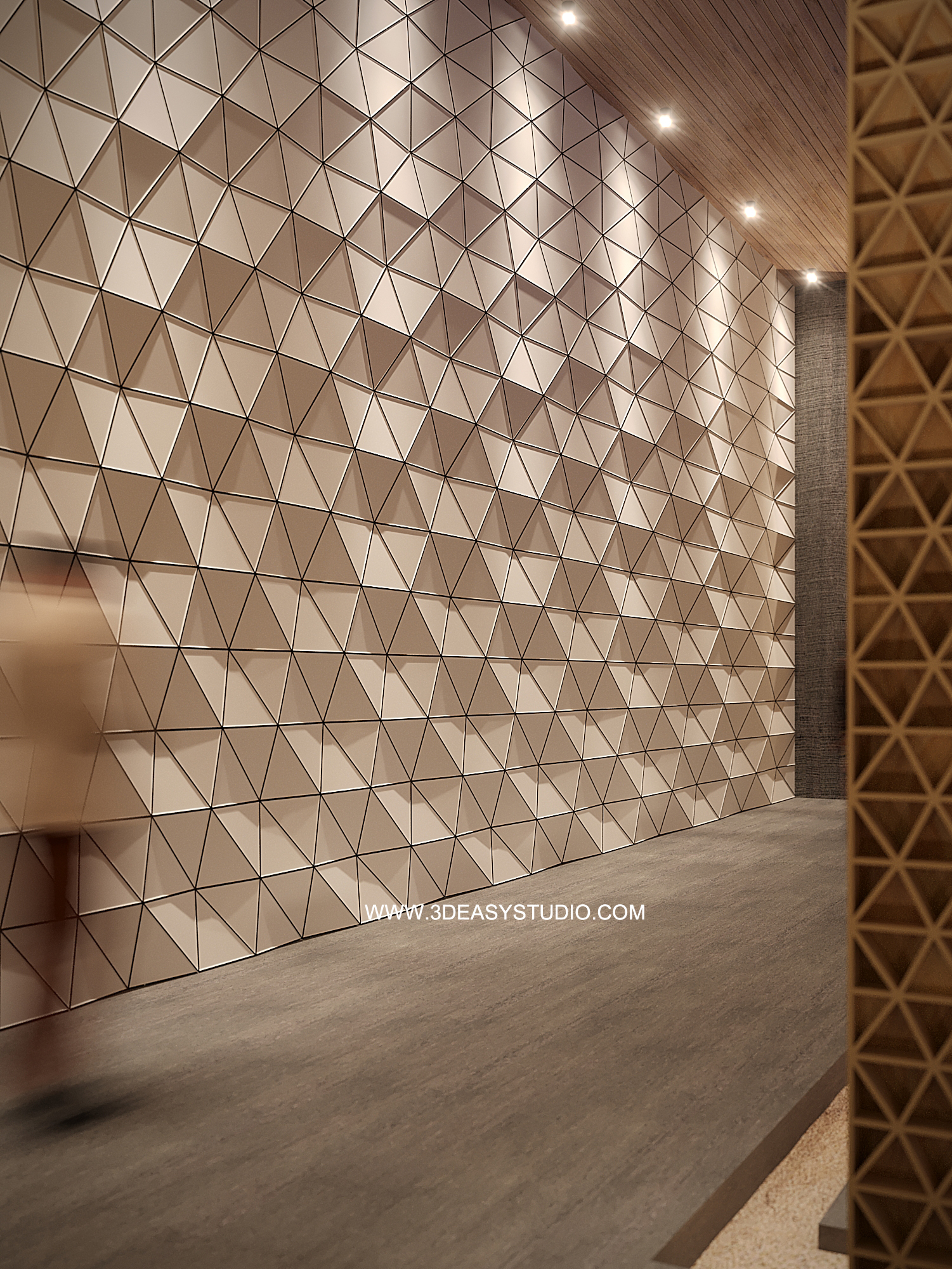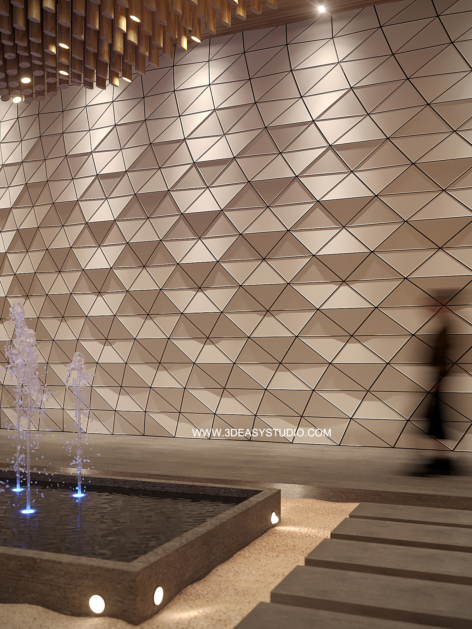 รูปแบบผนังตกแต่ง3 เหลี่ยมต่างระดับ ปรับโค้งได้ ปรับแต่งขนาดกว้างยาวลึกได้ตามต้องการเสร็จแล้วสามารถใส่ Material สีสัน และ Texture ได้ตามต้องการ