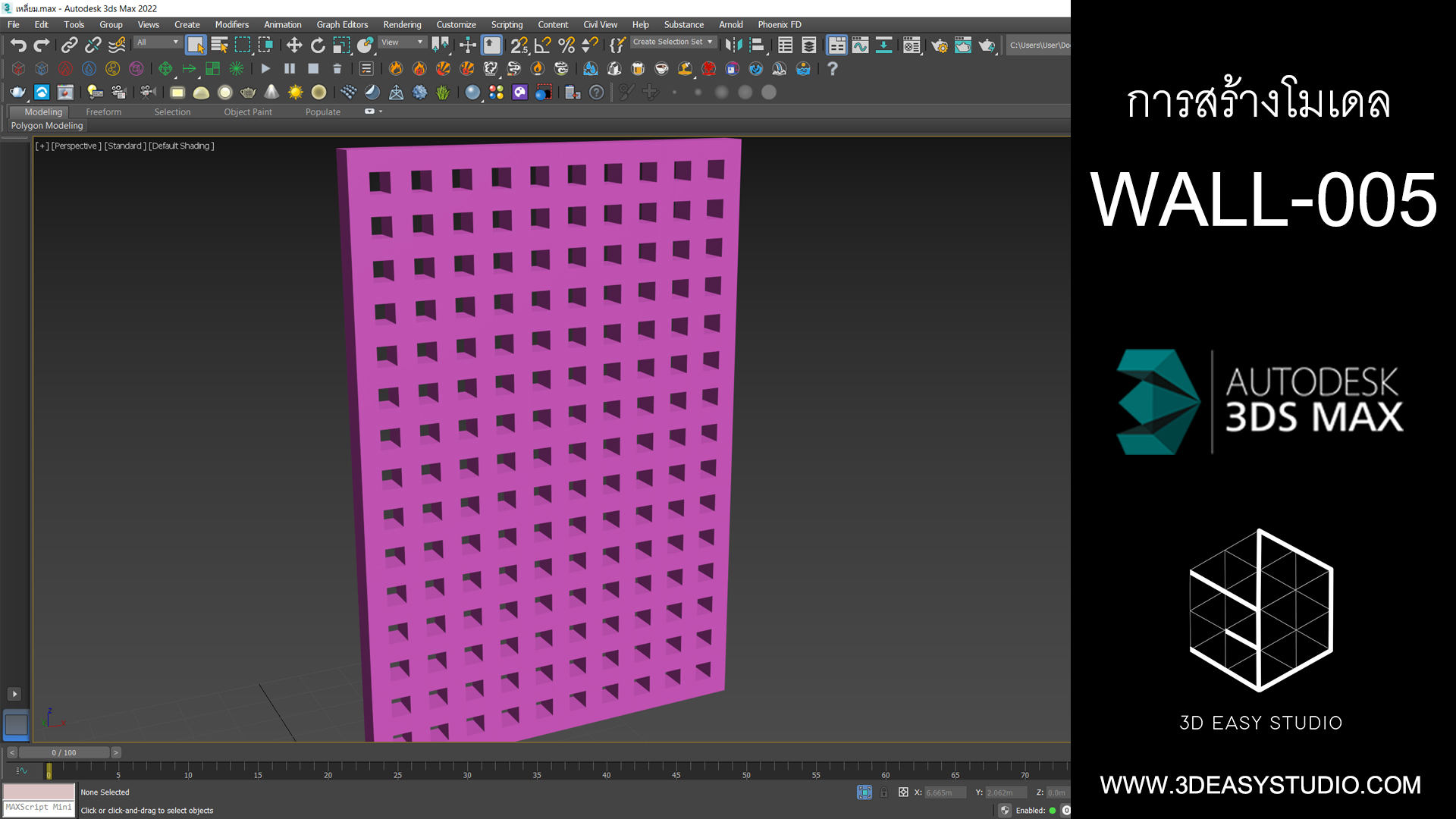 WALL-005 FREE! author Admin-3Deasystudio Category Model 3DsMAX (0 reviews) Course Description วิธีการสร้างโมเดลผนังอย่างง่ายและรวดเร็ว สำหรับโปรแกรม 3DsMax *จำเป็นต้องมีพื้นฐานการใช้งานมาบ้างแล้ว หากไม่มีเรียนเพิ่มเติมที่ Worokashop 1 Beginning Interior* ผนังช่องโล่งสี่เหลี่ยมปรับความกว้างยาวและปรับความหนา และความกว้างของช่องได้ตามต้องการ เสร็จแล้วสามารถใส่ Material สีสัน และ Texture ได้ตามต้องการ ติดต่อสมัครเรียนผ่าน Facebook คลิก ! ติดต่อสมัครเรียนผ่าน LINE คลิก ! Curriculums WALL-005 Please login to bookmark this course. Bookmark This Course About Instructor Admin-3Deasystudio 3DS Max Professional View Profile Reviews There are no reviews yet. Add a Review Be the first to review “WALL-005 FREE!” Cancel replyYour Rating Your ReviewName * Email * Save my name, email, and website in this browser for the next time I comment. FreeTake this course Price: FreeTake this course Students: 2 Lessons: 1 Prerequisites: No Certificate: No