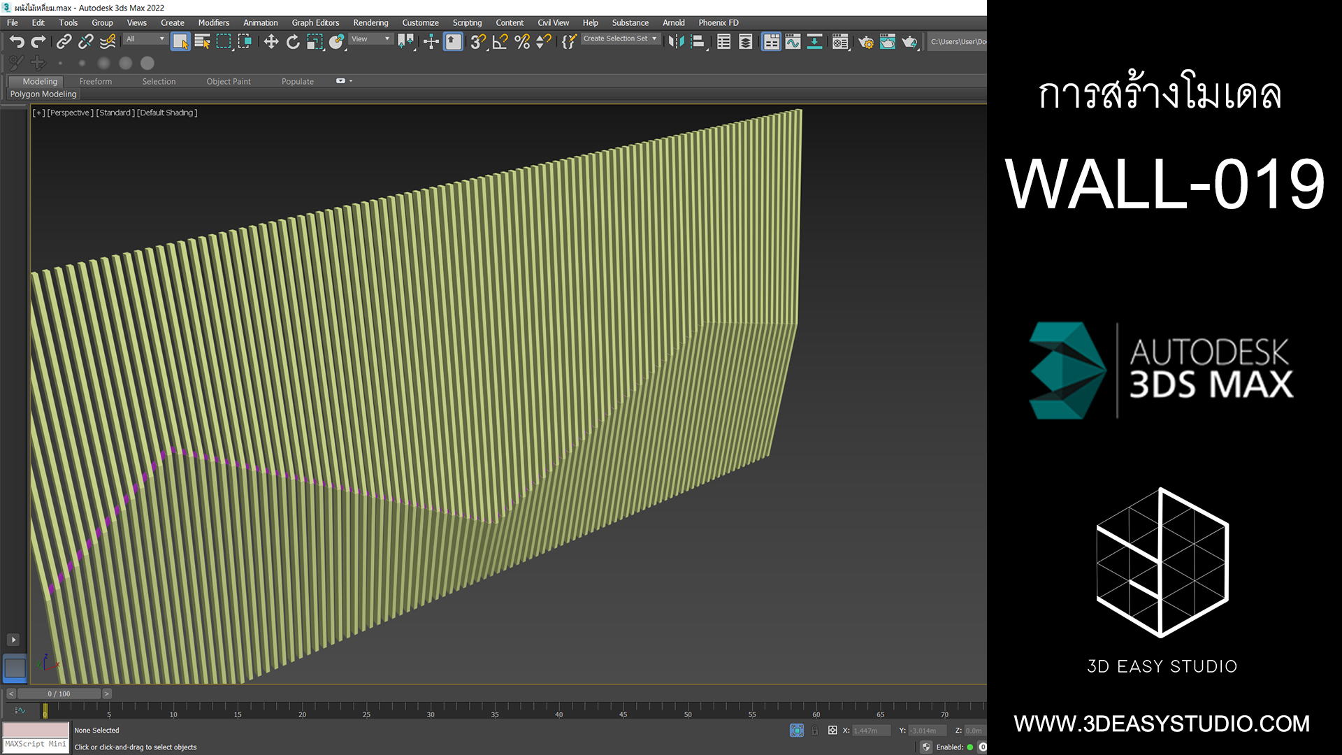 WALL-019 author Admin-3Deasystudio Category Model 3DsMAX (0 reviews) Course Description วิธีการสร้างโมเดลผนังอย่างง่ายและรวดเร็ว สำหรับโปรแกรม 3DsMax *จำเป็นต้องมีพื้นฐานการใช้งานมาบ้างแล้ว หากไม่มีเรียนเพิ่มเติมที่ Worokashop 1 Beginning Interior* ผนังไม้ระแนงปรับขนาดและการยุบยื่นได้ตามต้องการ เสร็จแล้วสามารถใส่ Material สีสัน และ Texture ได้ตามต้องการ ราคานักเรียนใน Class ดังนี้ UlTIMATE CLUB- FREE PREMUIM CLASS ลด 50% CORONA LOVER CLASS ลด 50 % EXCLUSIVE CLASS ลด 50% BEGINNING CLASS ลด 30% ติดต่อสมัครเรียนผ่าน Facebook คลิก ! ติดต่อสมัครเรียนผ่าน LINE คลิก ! Curriculums WALL-019 Please login to bookmark this course. Bookmark This Course About Instructor Admin-3Deasystudio 3DS Max Professional View Profile 499 ฿Take this course Price: 499 ฿Take this course Lessons: 1 Prerequisites: No Certificate: No