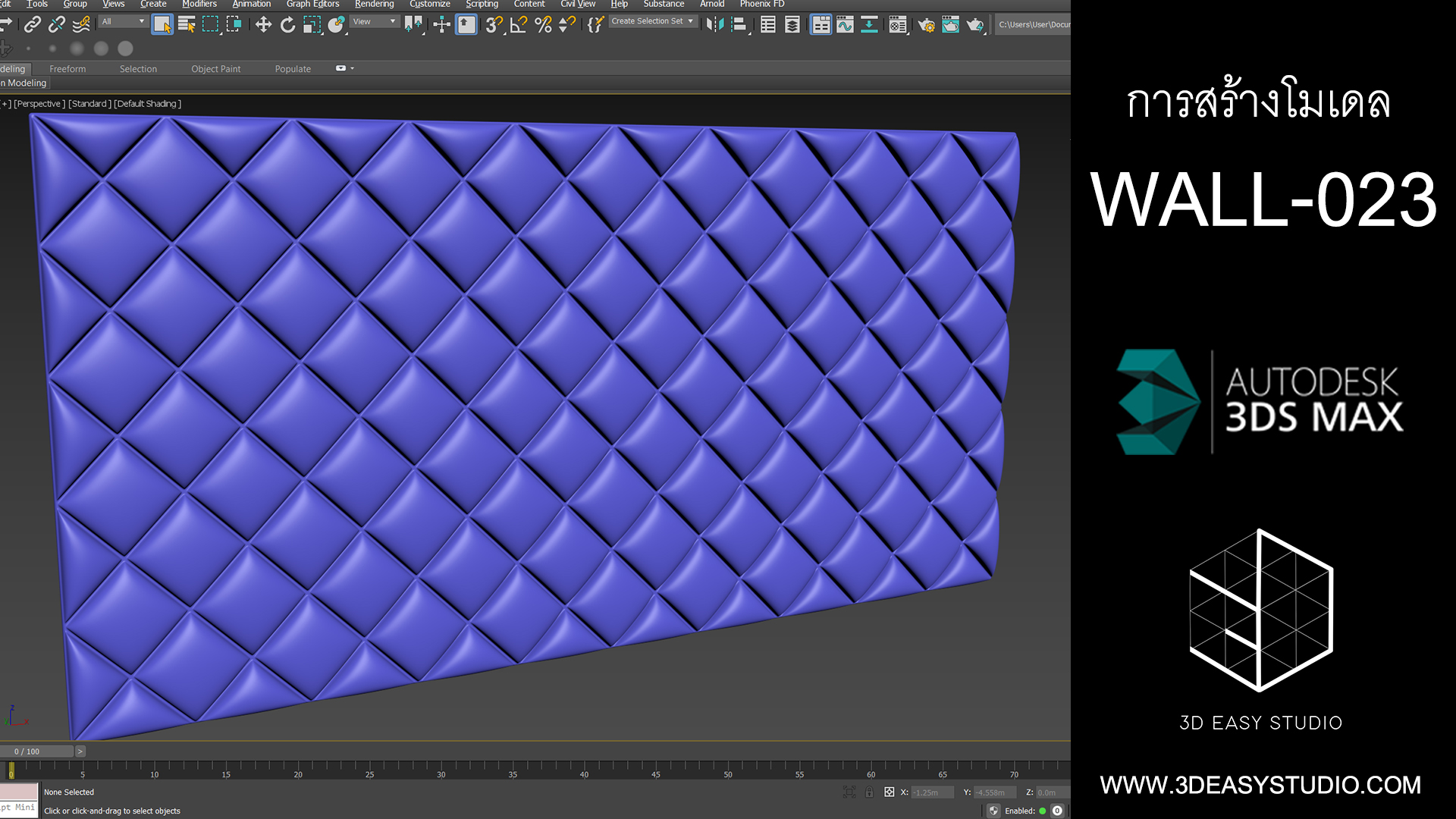 WALL-023 author Admin-3Deasystudio Category Model 3DsMAX (0 reviews) Course Description วิธีการสร้างโมเดลผนังอย่างง่ายและรวดเร็ว สำหรับโปรแกรม 3DsMax *จำเป็นต้องมีพื้นฐานการใช้งานมาบ้างแล้ว หากไม่มีเรียนเพิ่มเติมที่ Worokashop 1 Beginning Interior* ผนังบุนวมนุ่มๆรูปแบบลายข้าวหลามตัด ทั้งแผ่นเป็นชิ้นเดียวกัน ปรับระยะความหนาของเบาะ ปรับรอยดึงเย็บและขนาดความกว้างยาวของเบาะได้ ตามต้องการ เสร็จแล้วสามารถใส่ Material สีสัน และ Texture ได้ตามต้องการ ราคานักเรียนใน Class ดังนี้ UlTIMATE CLUB- FREE PREMUIM CLASS ลด 50% CORONA LOVER CLASS ลด 50 % EXCLUSIVE CLASS ลด 50% BEGINNING CLASS ลด 30% ติดต่อสมัครเรียนผ่าน Facebook คลิก ! ติดต่อสมัครเรียนผ่าน LINE คลิก ! Curriculums WALL-023 Please login to bookmark this course. Bookmark This Course About Instructor Admin-3Deasystudio 3DS Max Professional View Profile 199 ฿Take this course Price: 199 ฿Take this course Lessons: 1 Prerequisites: No Certificate: No